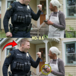 Officer Bradley Higgins stepped out. Twenty-six. New to this department, not new to complaints. He’d transferred down from a bigger city under a cloud that had been quietly folded and filed away. Oak Haven wasn’t a community to him. It was a territory. He adjusted his duty belt, left his cap in the car on purpose, and walked onto Martha’s lawn like he’d been invited.