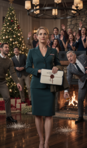 It wasn’t the shatter that stayed with me—it was the silence that rushed in behind it, like the whole room inhaled and forgot how to exhale. One second my father was standing tall in his tailored Christmas suit, whiskey in hand, wearing that practiced smirk he saved for moments when he wanted an audience to watch someone bleed without making a mess. The next second his face turned the color of ash, his fingers went slack, and the glass slipped from his hand and exploded across the polished hardwood between the tree and the fireplace.