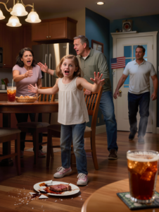 The plate of steak slipped from Mom’s hands and exploded against the hardwood floor. Ceramic shards scattered. The sound didn’t echo through the room so much as through my entire body.