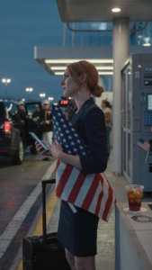 Months later, on the anniversary of Liam’s funeral, I went back to the airport—not for a pickup, just to stand for a minute near the vending machines by baggage claim. The same Sinatra station drifted faintly from a nearby bar. An iced tea sweated on a kiosk counter. And there, still clinging crookedly to the side of a machine, was a tiny U.S. flag magnet with one corner peeling up.