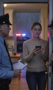 Two officers stood on my porch at 7:15 a.m., boots damp from early dew, shoulders squared like they expected danger to lunge out from behind a throw pillow. The older one had a calm face and a badge that read HAMILTON. The younger one kept scanning past me, eyes moving over the hall, the couch, the corners. Hamilton spoke first, polite but firm.