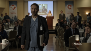 The giant screen behind her lit up with a promo video. Laurel shaking hands. Laurel handing out donation kits. Laurel smiling next to Dad. Then a blurred shot from an old residency workshop flashed on screen, and there I was in the background, anonymous, carrying a crash cart. No name. No mention. Just a body used to fill the frame.