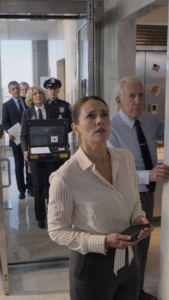 Behind them stood three uniformed officers and two attorneys in tailored coats. People who were used to being listened to.
