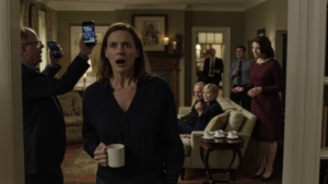 Meredith stood in the background near the counter with grocery bags, a pot on the stove, concern and devotion in the way she hovered without making herself the center.