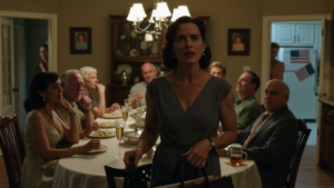 The first thing I noticed when I pulled into my in-laws’ driveway was the crooked little U.S. flag magnet on the side of the garage refrigerator, visible through the screened porch, holding down a takeout menu with one corner curled from the heat. The second was the smell—grilled burgers, ribs lacquered in sauce, sweet corn charring at the edges, the kind of summer air that should have felt like belonging. Somewhere deeper in the house, Sinatra played low through a Bluetooth speaker, soft enough to sound accidental. On the patio table, a glass of iced tea sweated onto a paper coaster, leaving a ring that looked too delicate for a family this practiced in leaving marks. I checked my lipstick in the rearview mirror, smoothed my dress over my knees, and told myself what I had told myself for seven years: show up, be gracious, do not give cruelty a scene to perform inside. But even before I opened the car door, I knew the evening had already chosen its target.