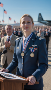 I was twenty-six and fresh off advanced fighter training at Luke Air Force Base. The uniform still felt new, like it didn’t belong to my body yet. Dress blues pressed sharp enough to cut. Silver bars on my shoulders. First Lieutenant Emma Hayes. I wore it on purpose.