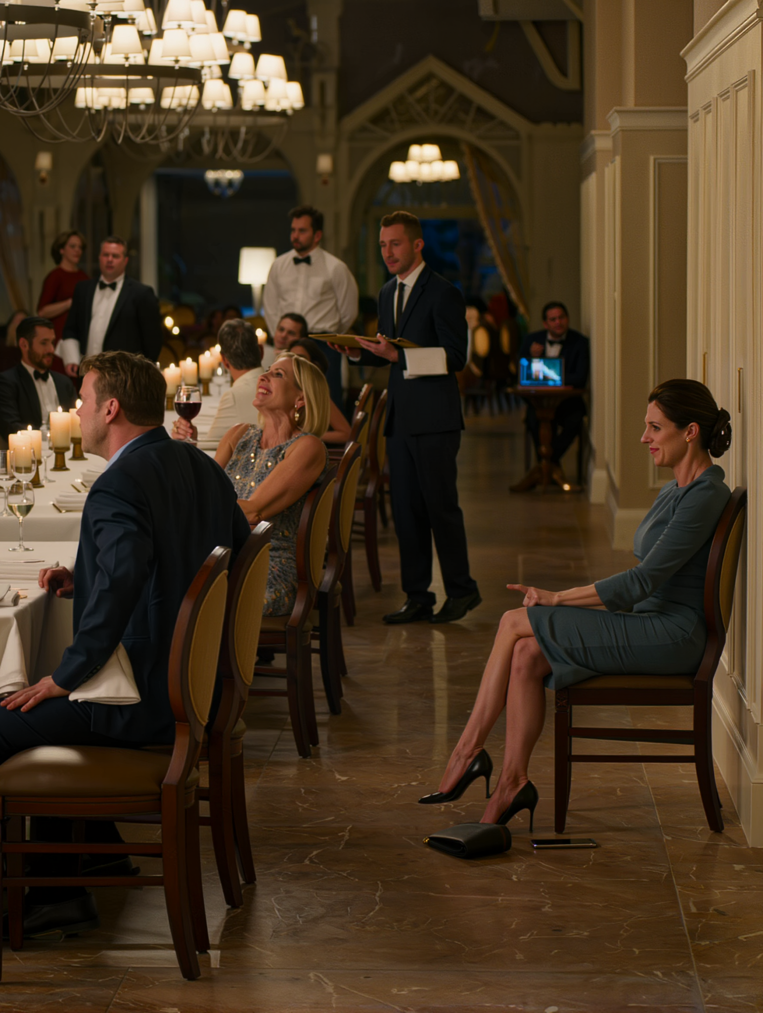 I arrived early. Alone. Wearing a slate-blue dress I’d bought years ago and never worn because I was always saving “nice things” for a moment that never came. At the table, the place card was near the restrooms again. I sat, hands folded, and watched how long it would take anyone to acknowledge me.