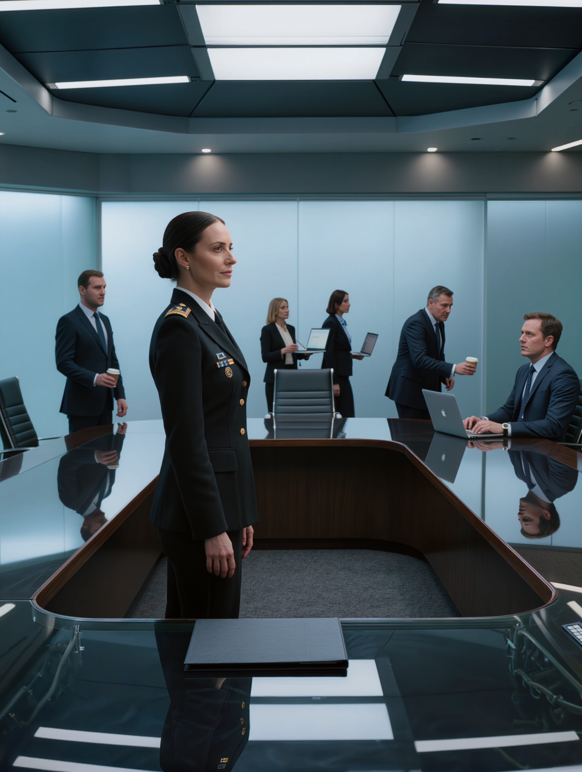 On the conference floor, the CEO’s assistant met me outside the war room. “Colonel, we’ve got your place set. Name plates already up.”