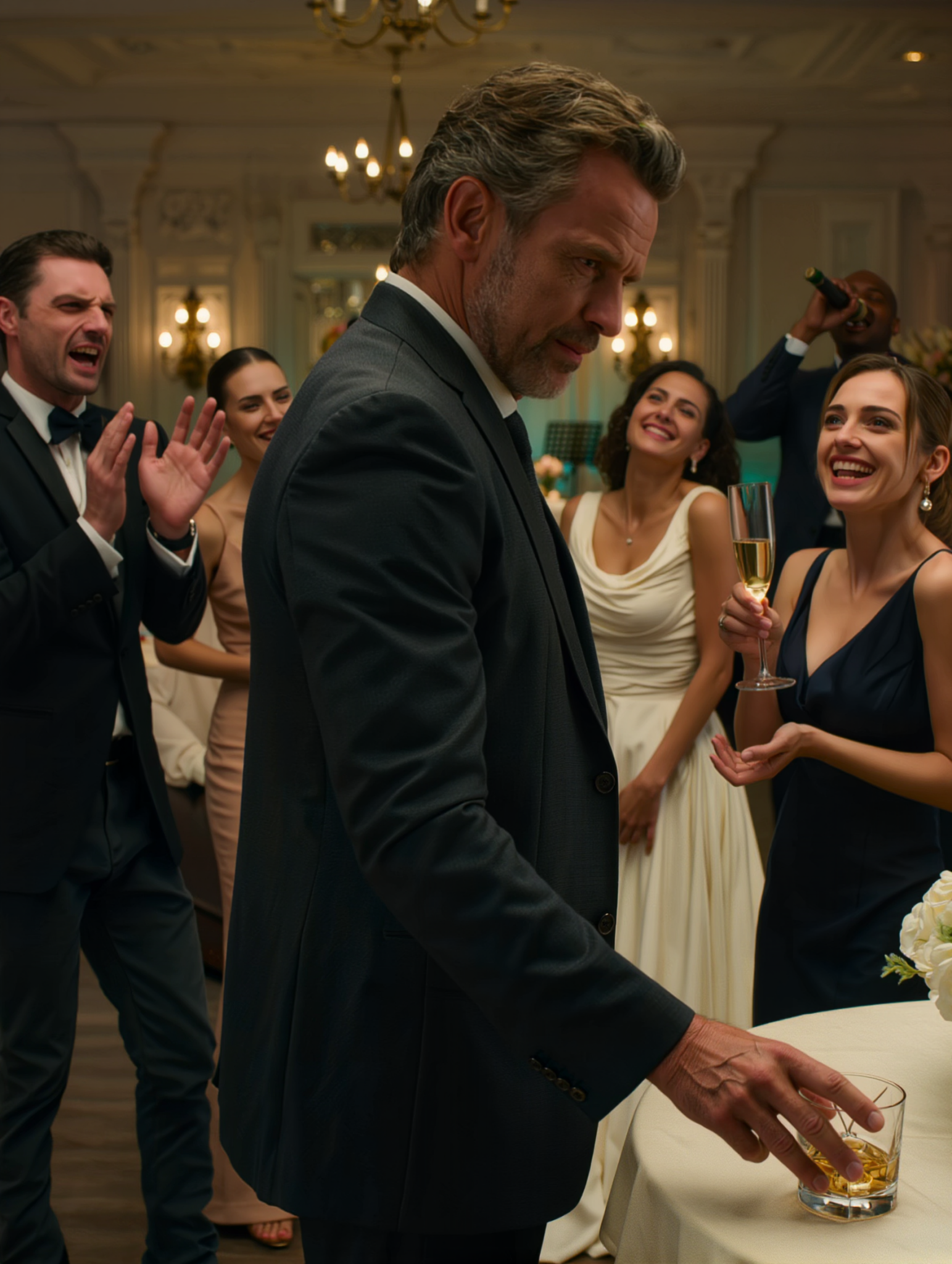 Not a warm laugh. Not the private one she used when she was happy and forgot to perform. This one was higher, sharpened, built for an audience, and it sliced through the wedding reception like a champagne flute breaking on tile.