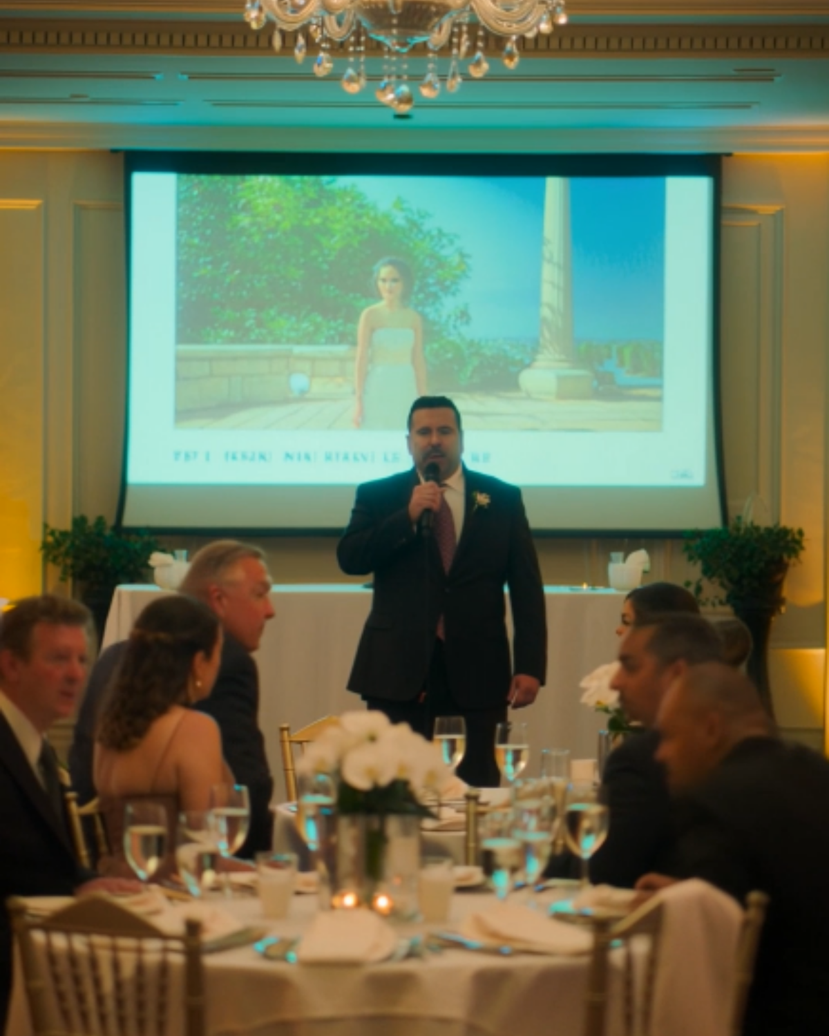 And then, right at the point where weddings usually glide into forever, the doors at the back of the ballroom slammed open.