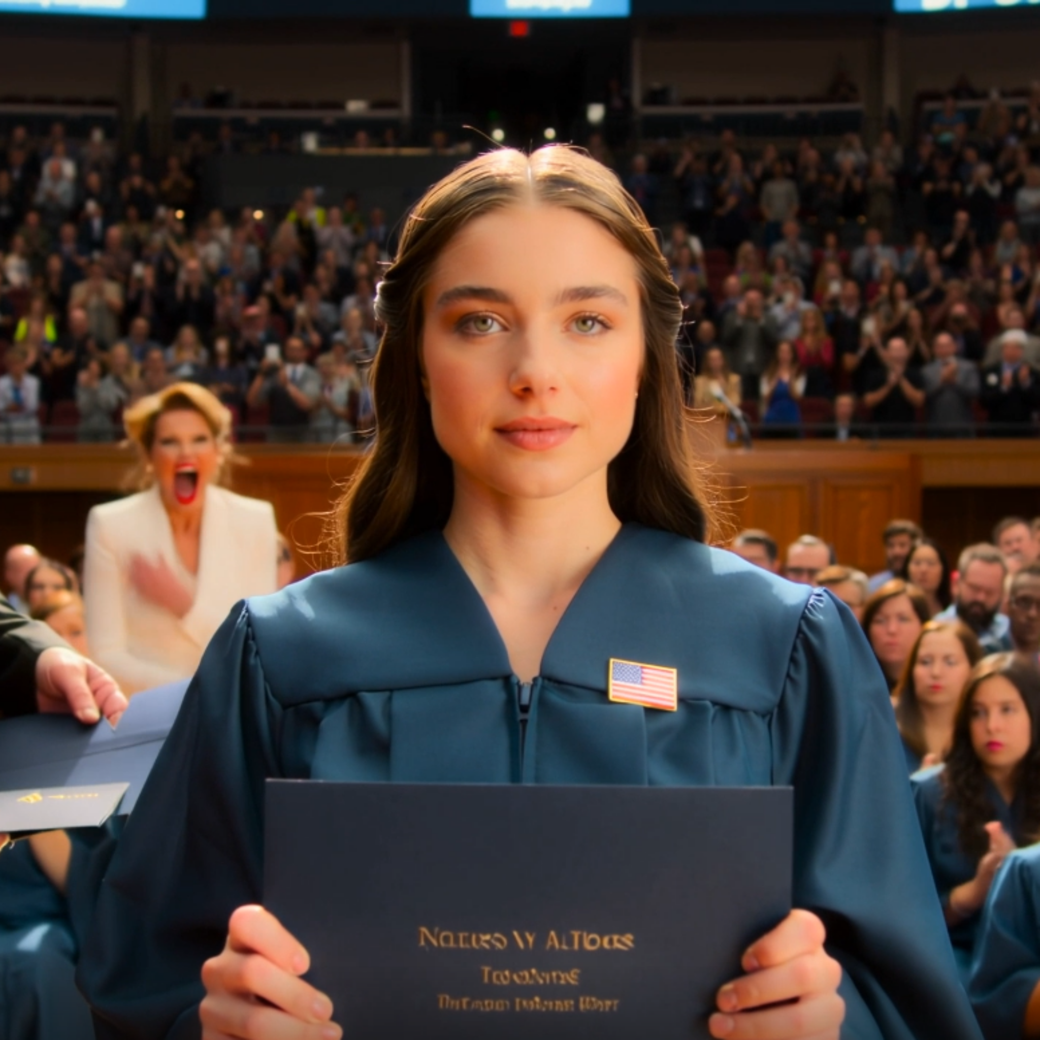The arena smelled like hairspray, paper programs, and that faint burnt-coffee tang drifting from the concession stand. Families stood in the aisles taking photos. Someone behind me whispered, “Play it again,” when the band hit the first notes of “Pomp and Circumstance,” like this was all a movie they could rewind. I was three steps from the podium, diploma name card in my hand, heart hammering in my ribs, when my sister’s voice cut through the applause.
