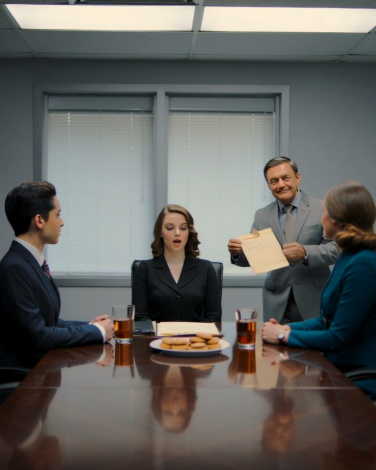 The {US flag } magnet on the conference-room mini fridge was peeling at one corner, like even the adhesive was tired of pretending this was a normal family moment. Someone had brought a tray of supermarket cookies no one touched. The lawyer’s assistant poured iced tea into plastic cups that clicked too loudly against the polished wood table. I sat with my hands folded, listening to the HVAC breathe, telling myself I could be calm for once—just exist in my own skin without bracing.