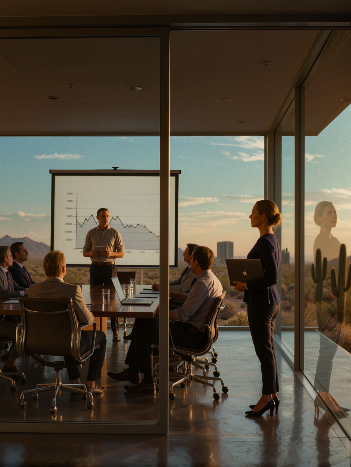 The sun was slipping behind the McDowells, turning Scottsdale glass into a golden bruise, when I noticed the little American flag magnet again—the cheap souvenir kind—crooked on the side of our office mini-fridge. Someone had stuck it there after a Fourth of July team lunch, and it kept sliding down, millimeter by millimeter, like even the metal couldn’t pretend it belonged. I nudged it back up without thinking. My fingers came away cold from the condensation, and the hum of traffic below the window sounded like a warning disguised as normal.