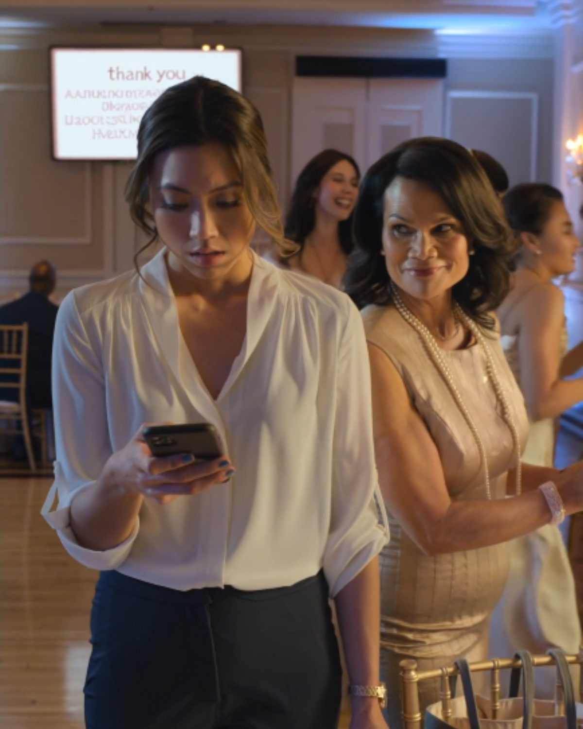 Across the room, Aileen’s phone lit. She glanced down, read it, then pressed the lock button slowly, like she was smoothing a wrinkle in her dress.