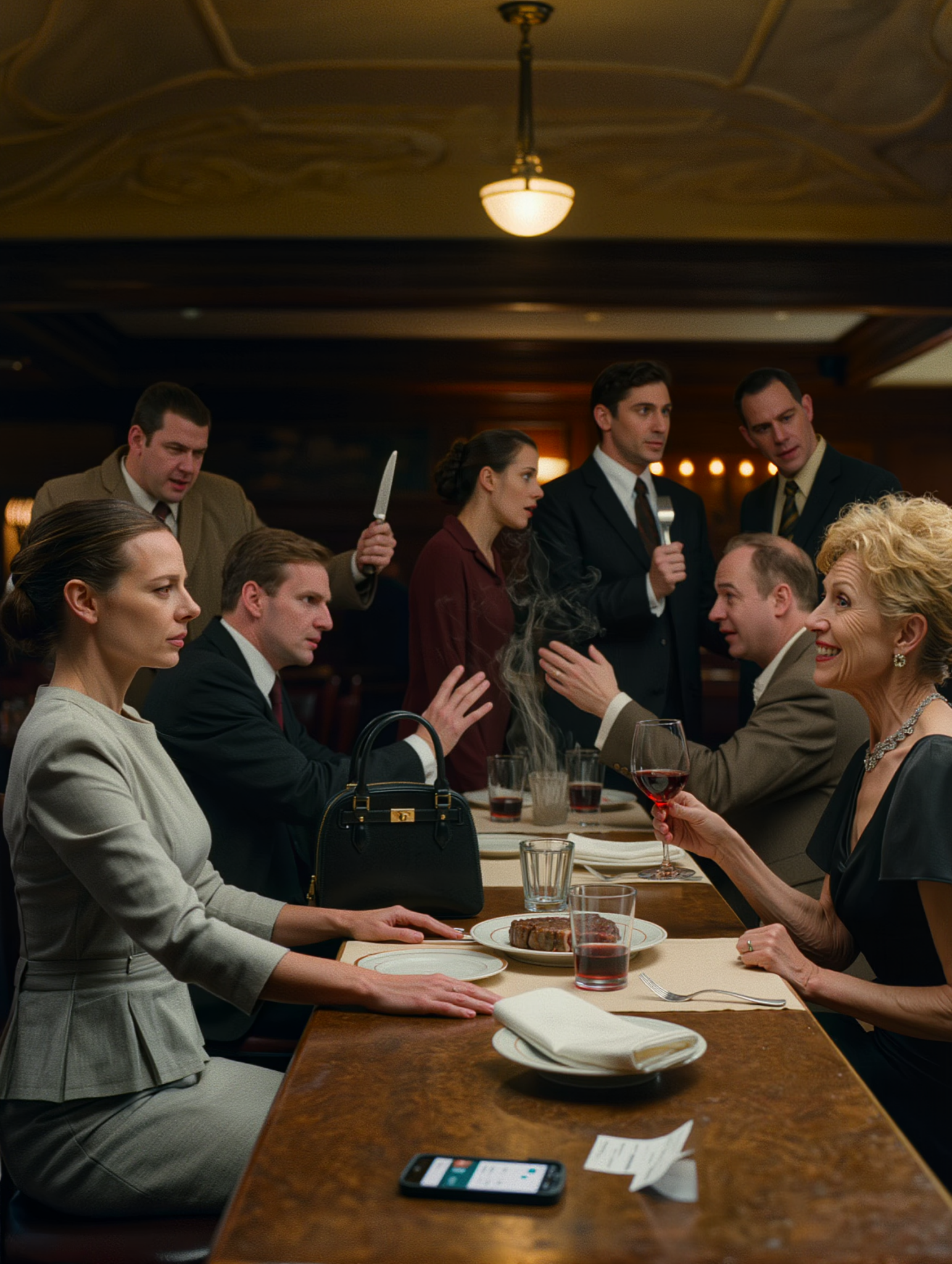The insult landed in the middle of an American-style steakhouse—one of those places with low lighting, loud laughter, and steak knives that flash under warm lamps.