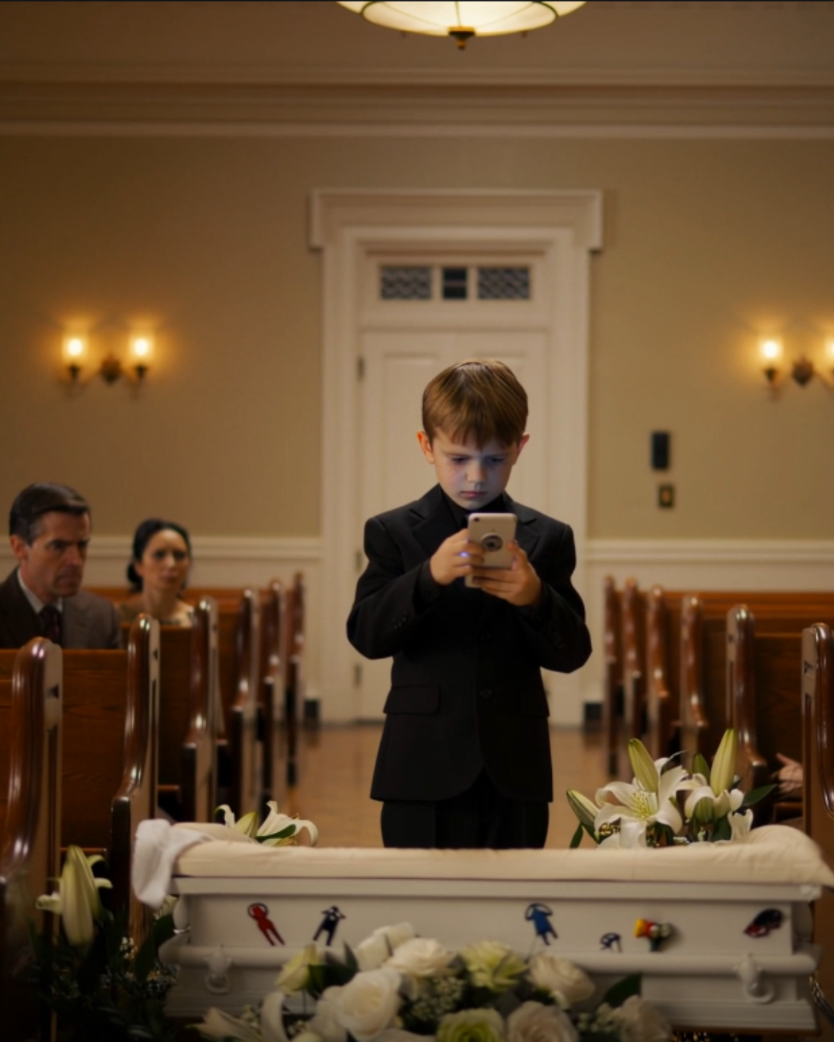 The first thing I noticed wasn’t the flowers, or the hush, or even the small white casket at the front. It was the little American flag outside the funeral home, snapping in a tired wind like it had its own grief to work through. Someone’s truck in the lot had a faded flag magnet slapped crooked on the tailgate, and for a second my brain latched onto that—anything simple, anything ordinary—because nothing about burying your seven-year-old is supposed to feel real. The funeral director offered paper cups of iced tea near a table of tissues and prayer cards. A low Sinatra song drifted from a speaker in the lobby, the kind of polite background music that pretends a room isn’t breaking.