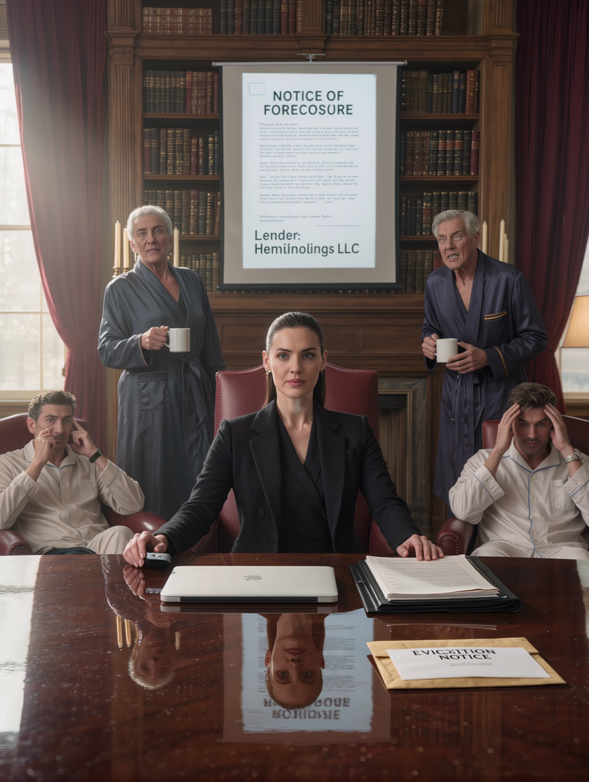A document filled the wall: notice of foreclosure.
