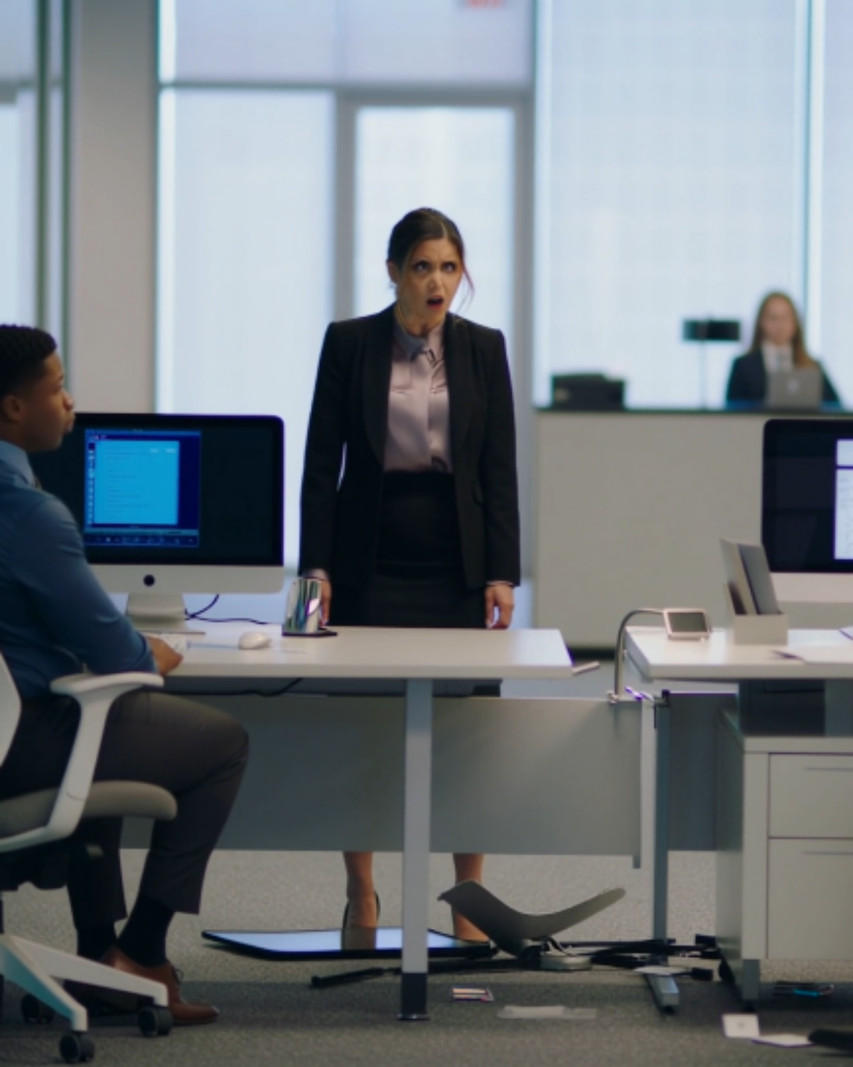 Then she spotted Kevin—one of my old coworkers—walking past with a folder.