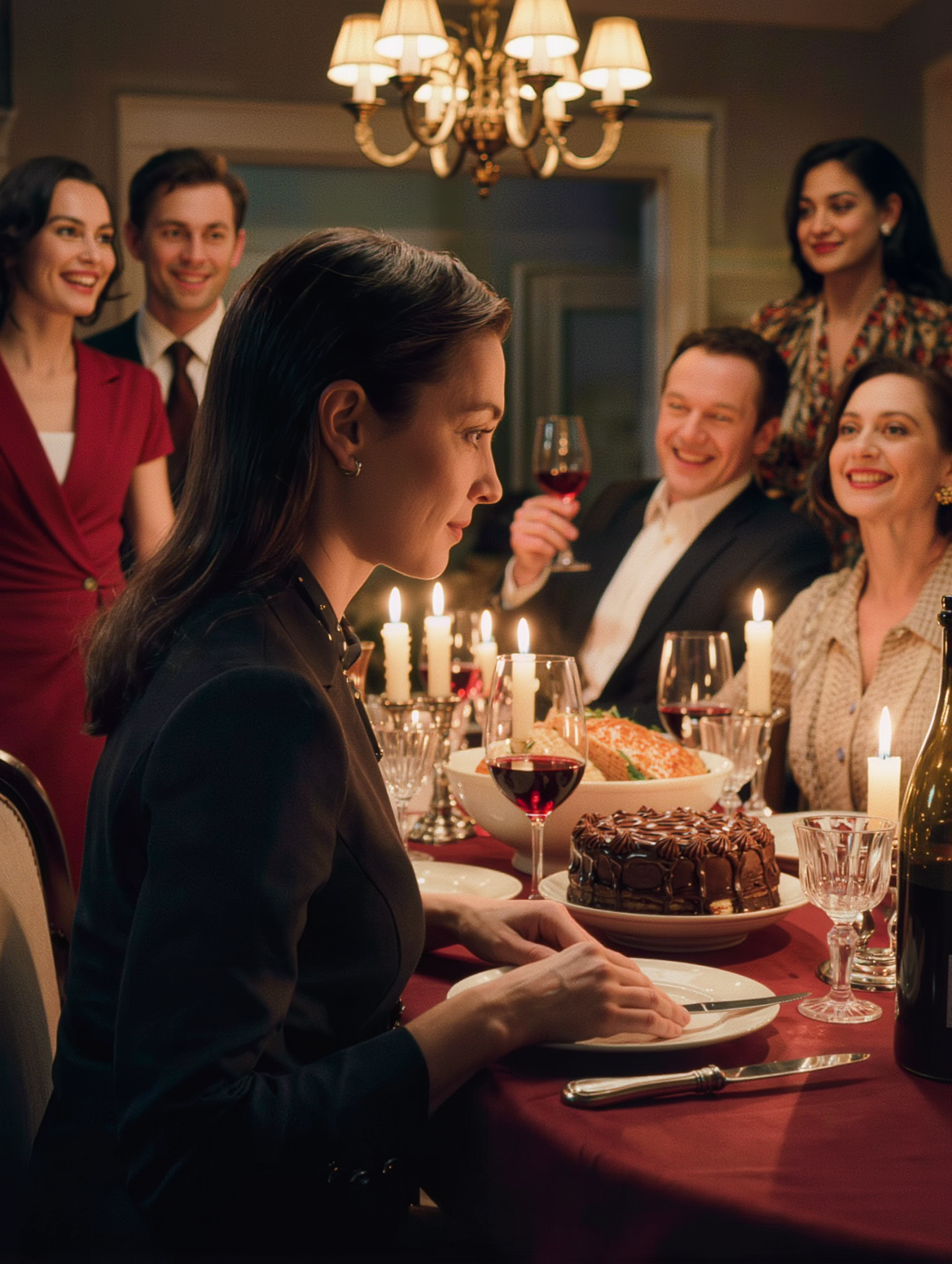 The house was perfect—burgundy tablecloth, crystal glasses, silverware polished like mirrors, turkey and cranberry filling the air with warmth that looked like love from far away.