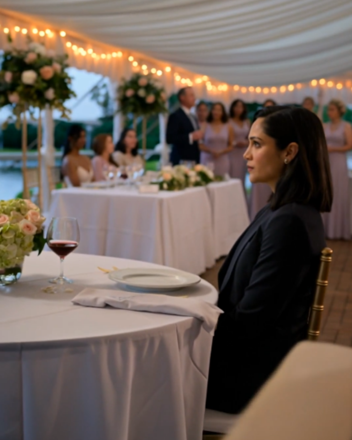 They escorted me to a table near the back of the reception tent, close enough to the kitchen door that I could hear trays clatter and staff whisper orders. Close enough to the restroom that every few minutes the door whooshed open and shut like punctuation.
