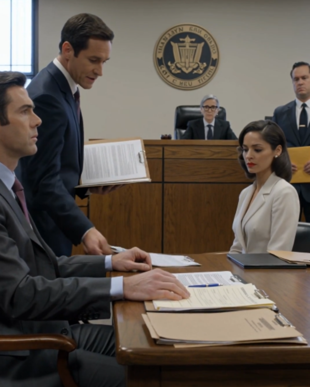 Her lawyer leaned toward her, whispering fast. She wasn’t smirking anymore. She was blinking like her brain was buffering.