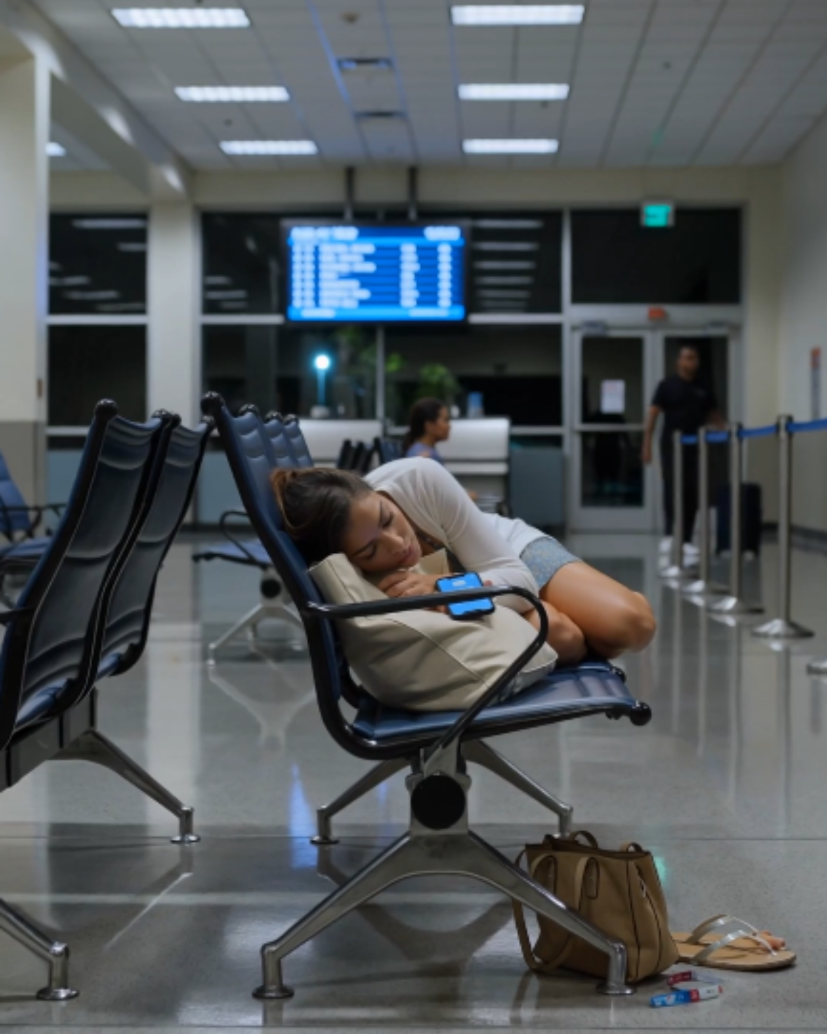 Around midnight, Jen posted one last update—almost like a punchline she didn’t understand she’d set up. A photo of Sarah curled up asleep in an airport chair, using her beach tote as a pillow.
