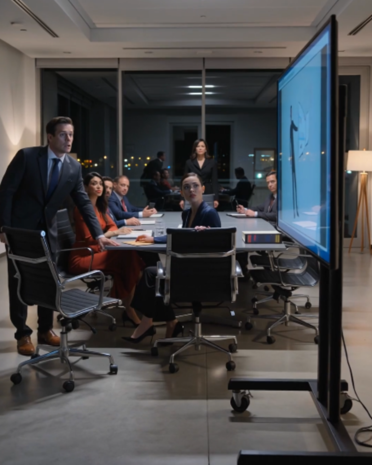 Phones buzzed. Board members exchanged glances. Someone stepped out of the room, already texting.