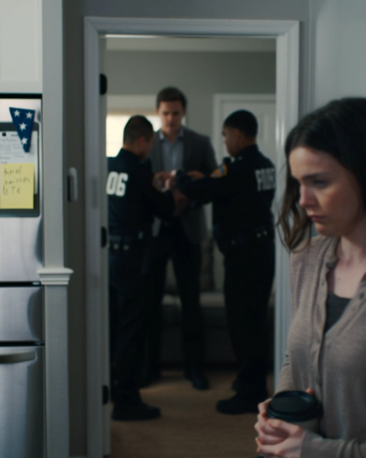 The morning of the arrest, I woke before Glenn, made coffee, and stood in front of the fridge like it was an altar. The U.S. flag magnet was still there, holding up the grocery list. Beneath it, Glenn had added “SMOOTHIE” again, as if repetition made it love.